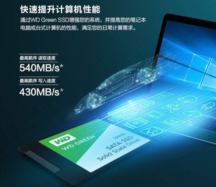 电商宝贝页中,这款特效狂拽酷炫的120GB西数绿盘标称的读写速度分别是540MB/s、430MB/s,读取速度就不说了,但写入速度和我朋友发的截图简直是差了十万八千里。