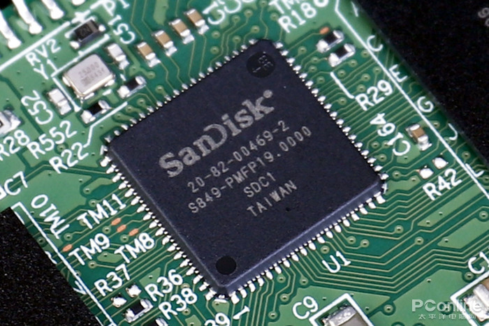 主控芯片上印有闪迪的LOGO,闪迪并没有公布自家芯片的信息。