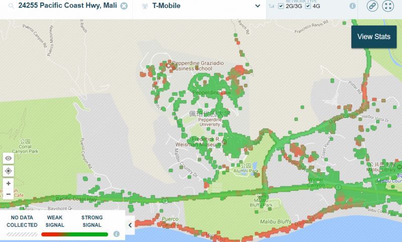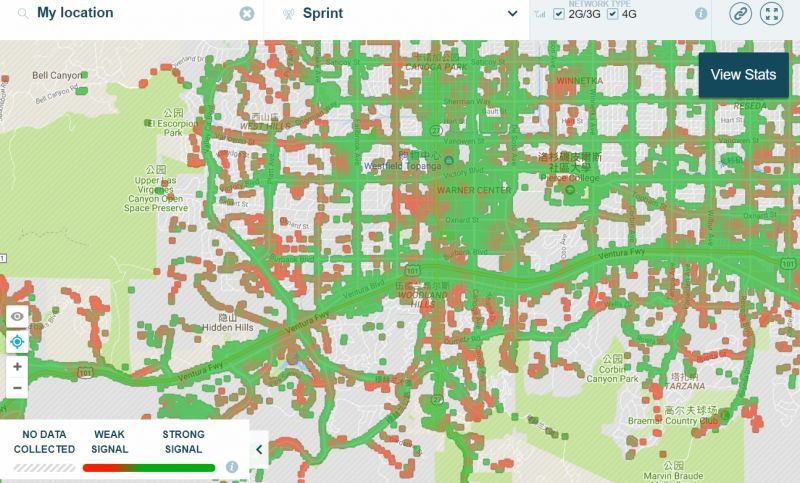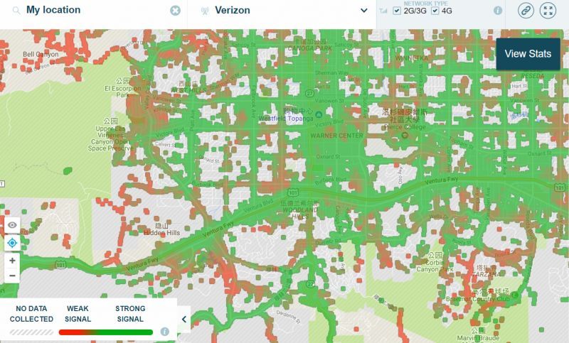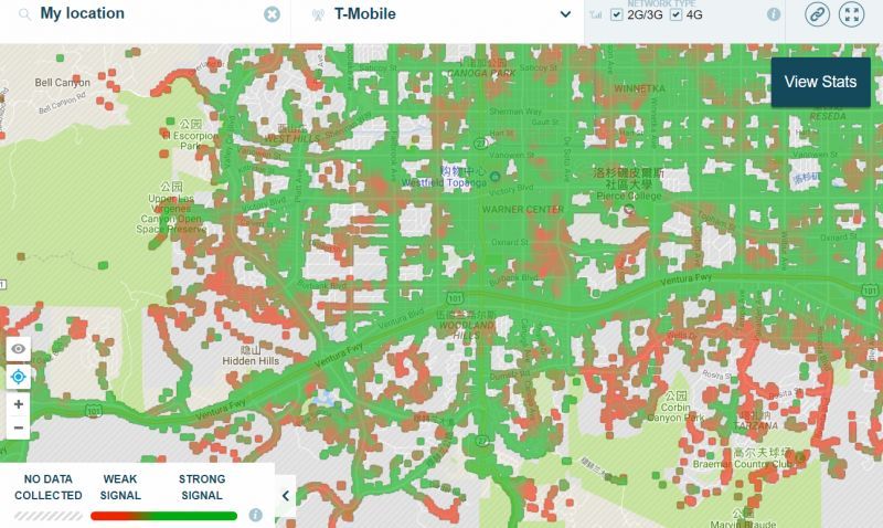 通过两组比较可以发现,T-mobile 在校园内的网络覆盖最好,在小编所在住处 Woodland Hills,T-mobile 和 Verizon 的网络相对另外两家更好。但是不同地方各家运营商的表现不一样,建议大家前往 https://opensignal.com/ 搜索自己主要活动范围的网络覆盖情况,选择最适合自己的服务。