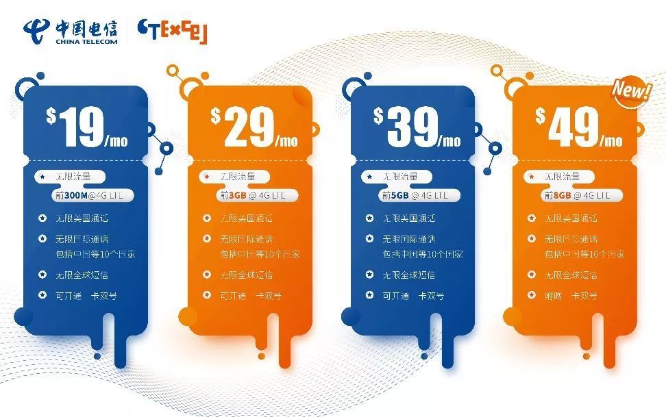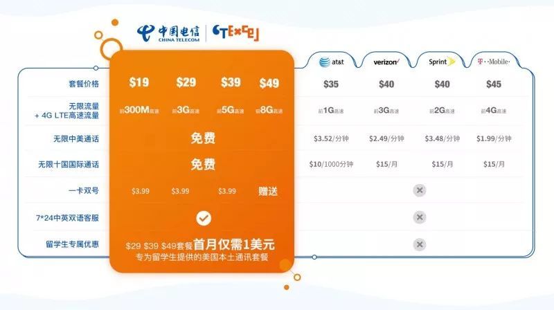 选择流量套餐:首月只需支付1美元就可以从$29,$39以及$49三种套餐中任意选择。每个套餐不仅包含无限美国通话,无限国际通话以及无限全球短信,更有超大容量高速流量,同学们不仅仅可以微信畅聊,还能随时随地看视频、玩游戏!