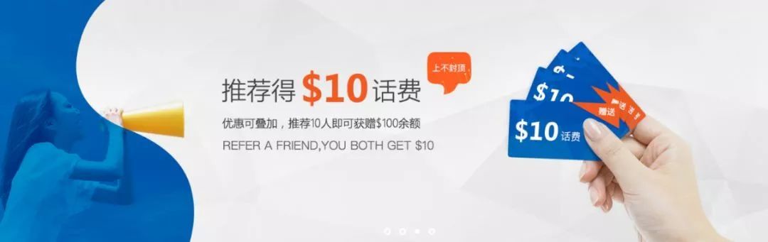 推荐新用户,双方均获赠$10话费,上不封顶!