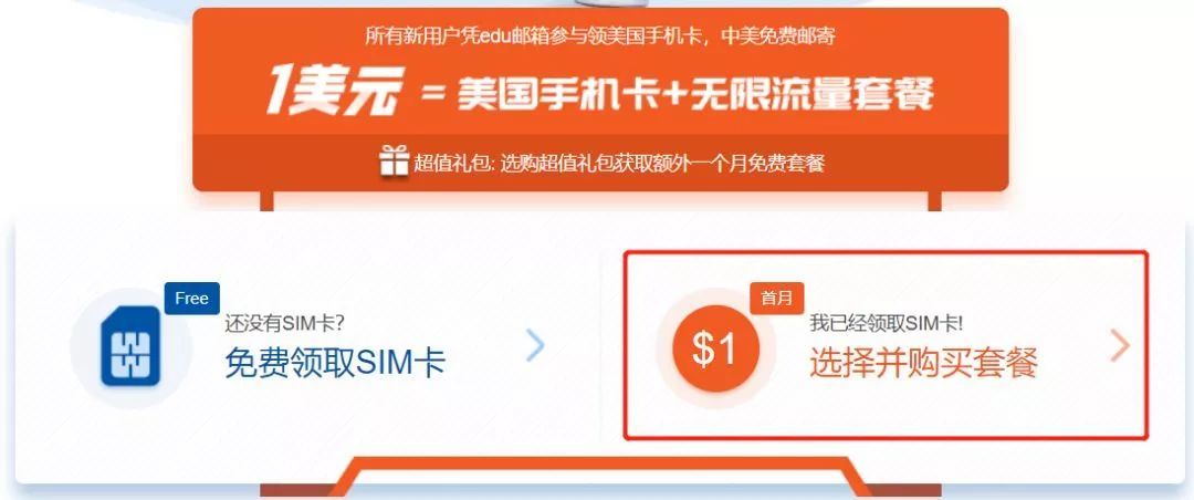 拿到电话卡后——登陆中国电信美洲公司官网——通过首页进入“秋季一美元”活动信息页——点击“选择并购买套餐”——进入套餐选择页面