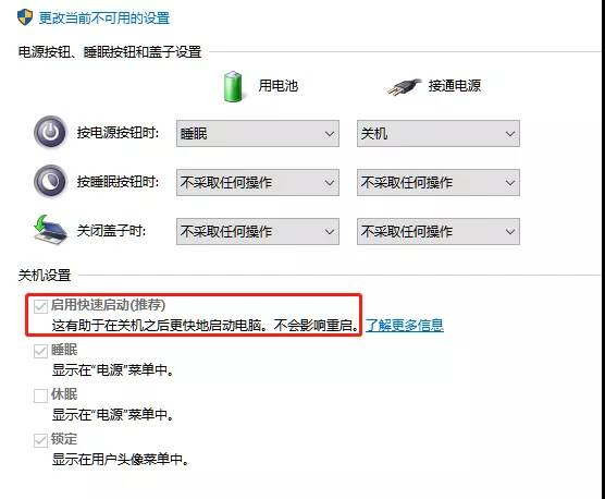 其实快速启动默认状态下就是开启的,手动开启方式:Win+X打开菜单选项,点击“电源选项”—“其他电源设置”,左侧点击"选择电源按钮功能",之后"更改当前不可用的设置",向下拉,就可以设置开启"快速启动"了哦。