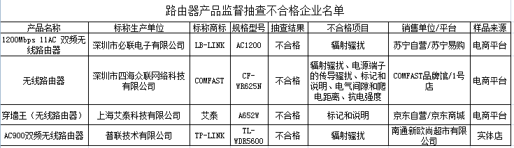 4月3日,江苏省质量技术监督局发布路由器产品质量抽检情况。本次共抽查了34批次产品,合格30批次,合格率为88.2%。