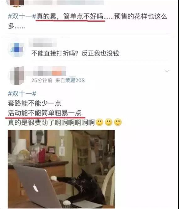 不过,许多网友都表示:所有买买买的欲望,在双十一各商家的预售套路面前都化为乌有。