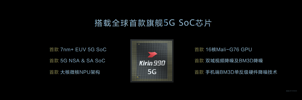 华为Mate30系列5G版搭载了华为全球首款旗舰5G SoC麒麟990 5G芯片,是业内最小的5G手机芯片方案,基于业界最先进的7nm+ EUV工艺制程打造,首次将5G Modem集成到SoC芯片中,带来了性能和能效方面实现跨越式升级。