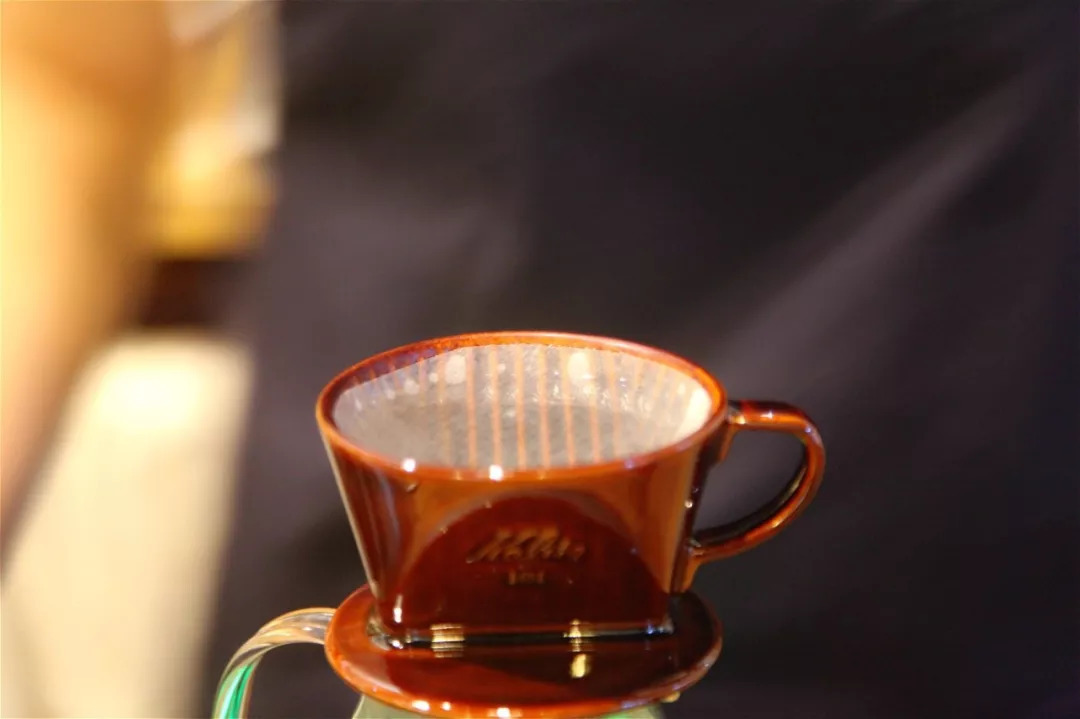 同时注意滤纸与滤杯的贴合程度,若滤纸会贴合下方的孔,那可能会造成流速过慢以致萃取过度,咖啡出现苦味,所以应该选择吻合的滤纸,我们使用的扇形滤纸,厚度较薄,水透过滤纸的速度快一些,不至于让咖啡粉浸泡太久,萃取不好的味道。
