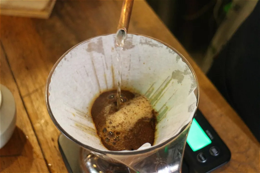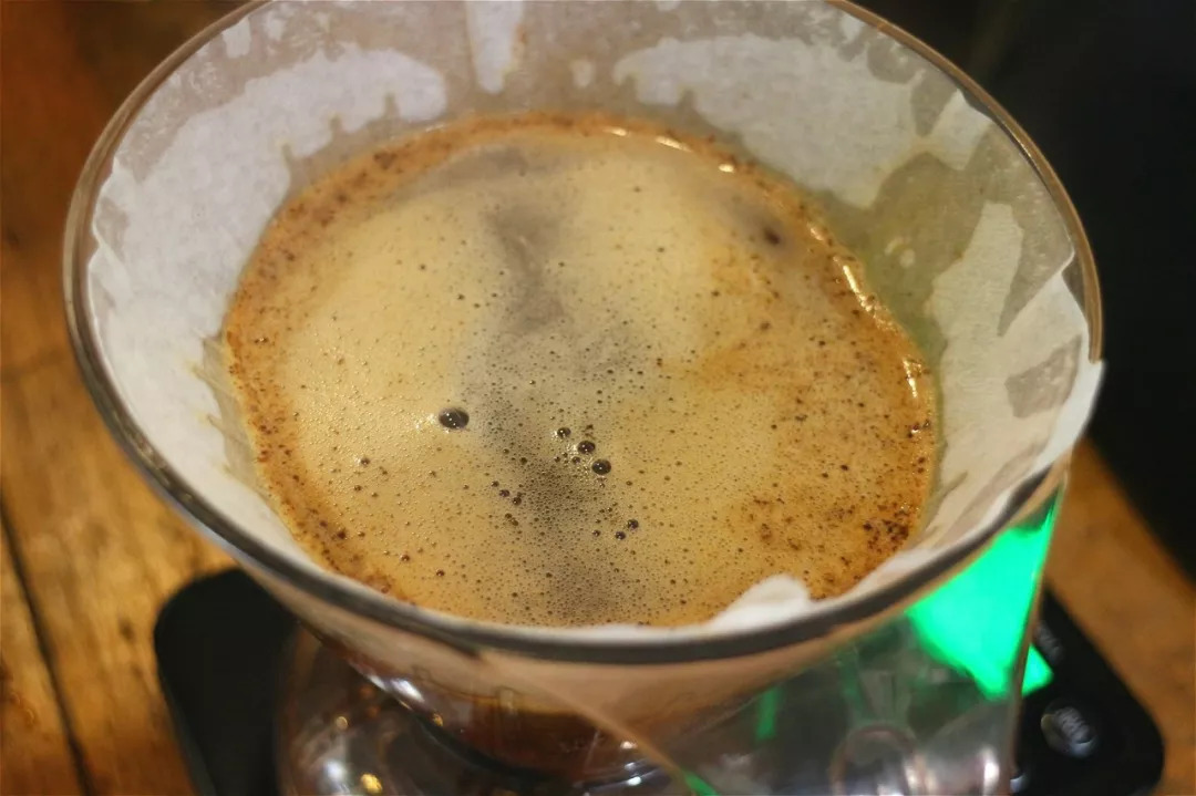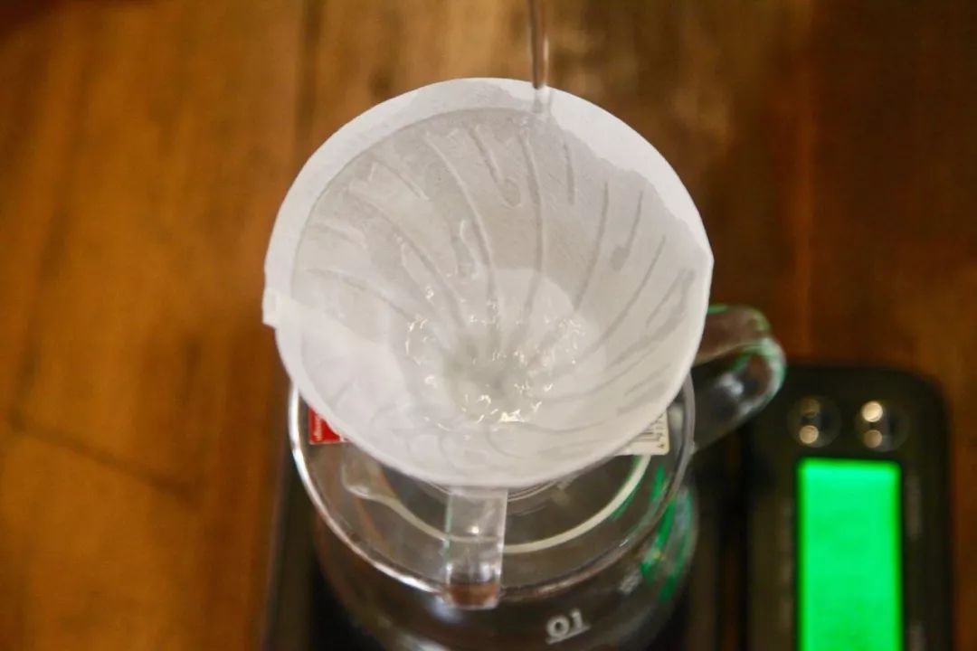 没有冲洗滤纸的冲煮,滤纸会在闷蒸时吸走了部分水分和油脂,并且带出来一些可疑的杂味。