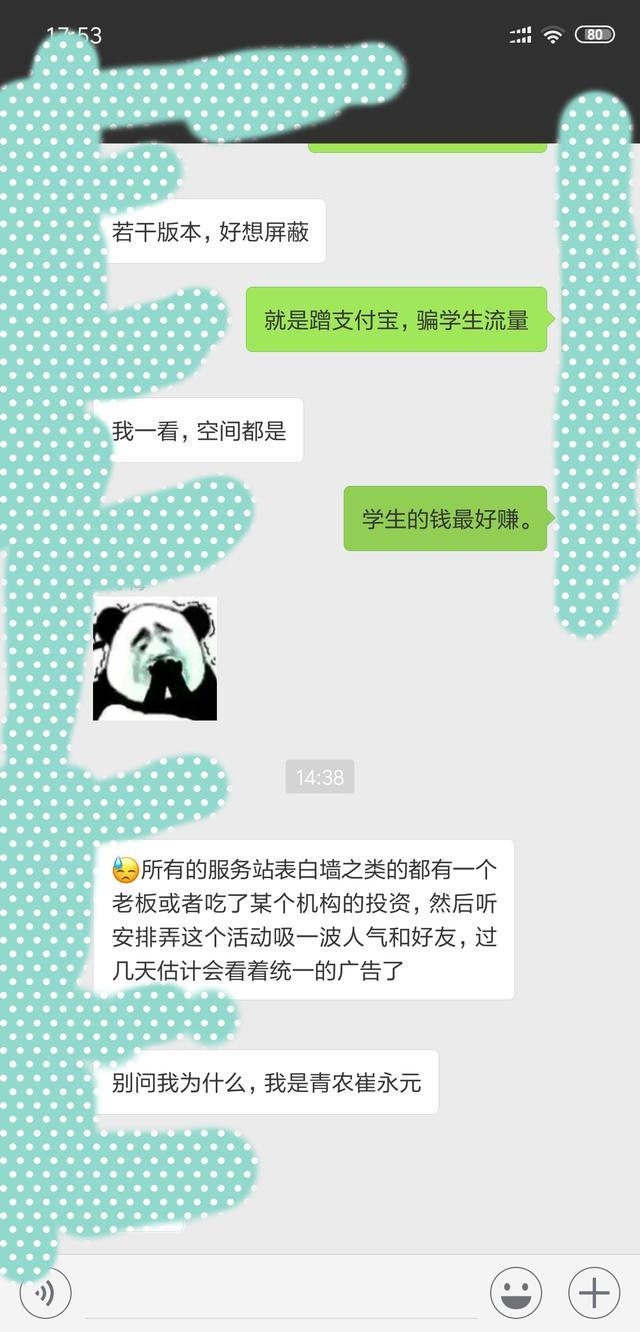 很明显,这是有人组织的一次营销,这些账号要么是同一团队在运营,要么是有人花钱做广告。对此,匿名为青农崔永元的大三学生透露:所有的服务站表白墙之类的都有一个老板或者吃了某个机构的投资,然后听安排弄这个活动吸一波人气和好友,过几天估计会看着统一的广告了。
