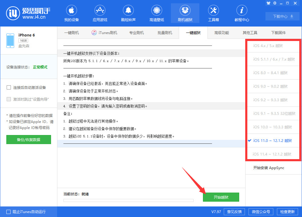 5、点击【开始越狱】就OK了