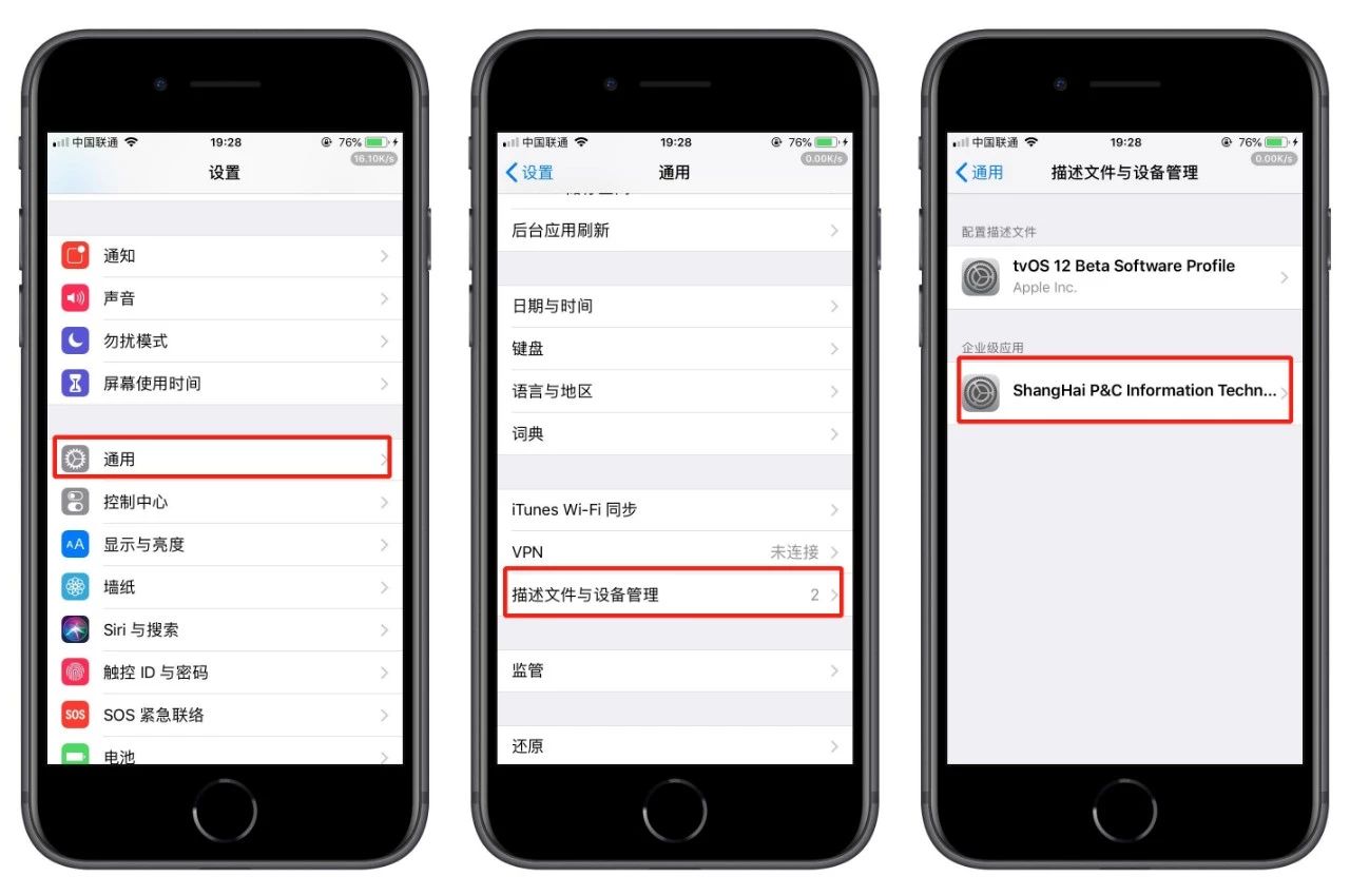 3、打开设备管理,选择信任描述文件