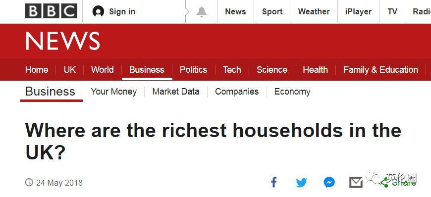 上周四(5月24日),BBC公布了一份英国最富有家庭的地区排名。