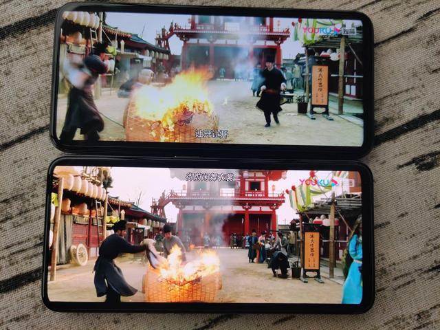 上图中的OPPO K3采用了AMOLED屏幕(OLED材质),能自发光,每个像素点都能投射出红绿蓝三原色的光,搭载LCD屏幕的荣耀9X由于屏幕有背光层和液晶层,只能通过折射光线来发光。在同样100%最高亮度下,不难发现AMOLED屏幕材质的OPPO K3会比采用LCD材质的荣耀9X显示效果更加鲜艳饱满,对比度也更高,色彩也更加艳丽,对比之下,差距还是很明显的。