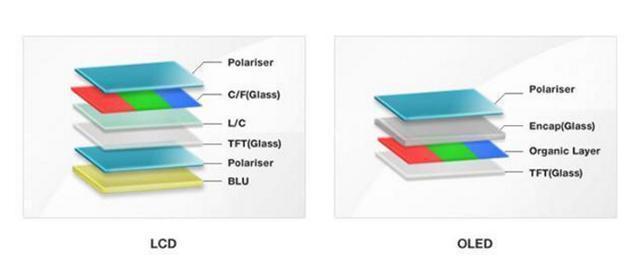 让我们先来看看OLED面板与LCD面板的区别,两者最大的区别在于发光方式:LCD材质依靠背光面板发光,而OLED材质则能实现自发光。
