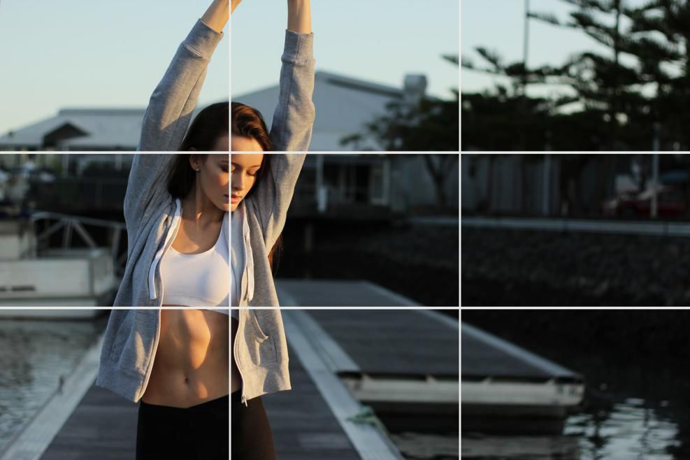 我举一个手机摄影中最常用的构图例子,寻找黄金分割点里的“三分法”。把图片横竖分割,成一个“井”字,将拍摄的主体放在任意一条直线的交点上。比如下图将人放在分割点上,在画面里就变得很明显。