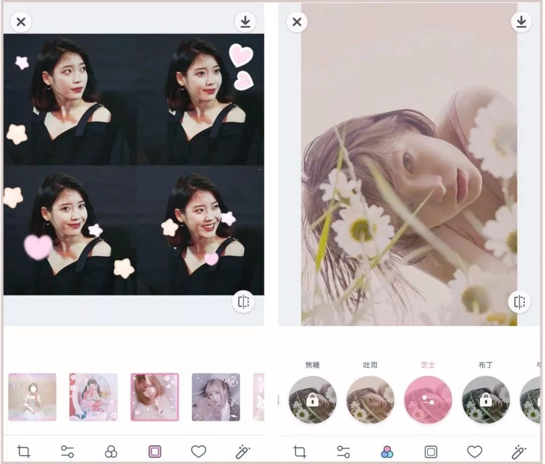 真的是软萌妹子必备了,贴纸和滤镜都是满屏的少女气息。