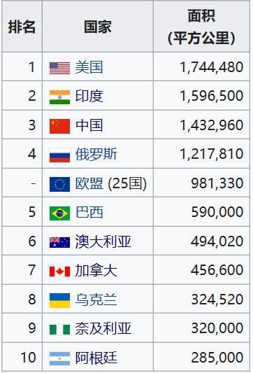 世界各国国土面积为——俄罗斯1700万,中国960万,美国960万,印度300万,日本38万,德国36万,法国67万,英国24万。