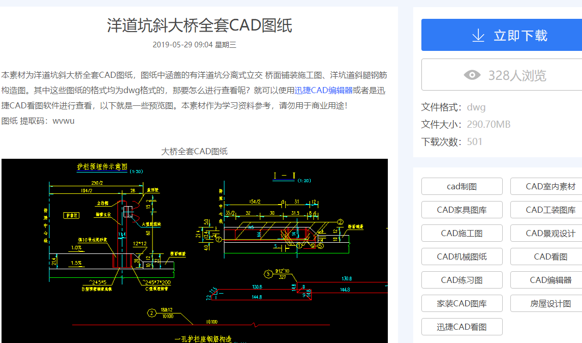 方式:打开任意浏览器搜索迅捷CAD每日一图获取相关图纸,点击后可以进行浏览,点击右侧可以直接下载使用!