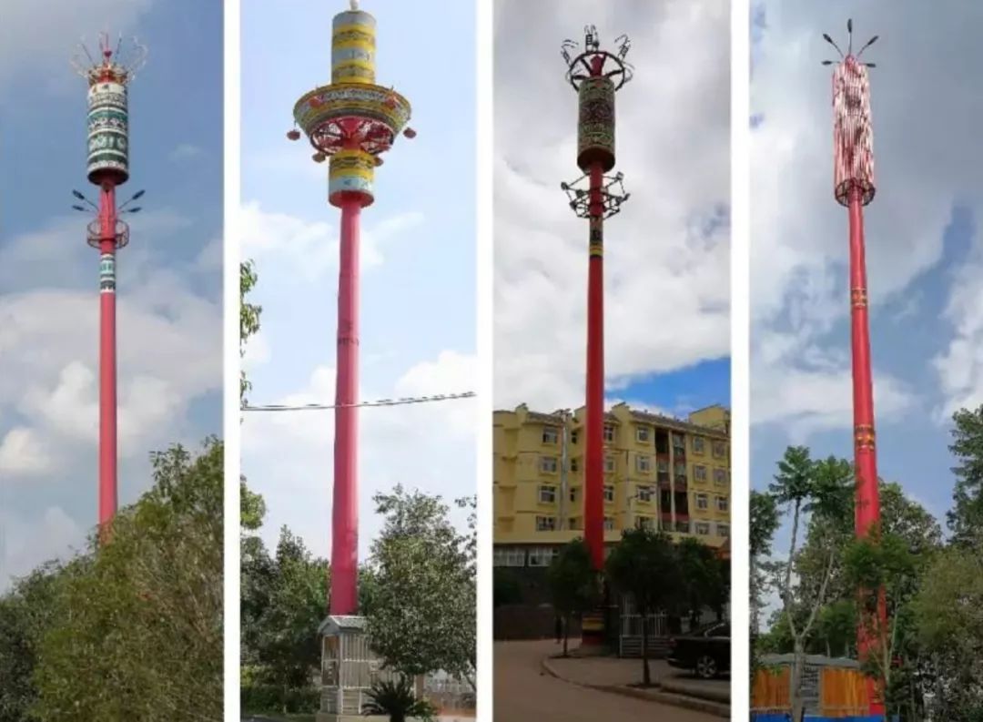 云南楚雄彝族自自治州,是以彝族为主体的少数名族自治州,火一直是彝族文化的象征,火把节是彝族传统中最为重要、最盛大的节日。楚雄公园及古镇区域为火把节举办地区,为了是塔与火把节节日氛围与当地民俗文化想契合,中国铁塔楚雄分公司,创新建设了“火把杆塔”与民族文化融为一体。