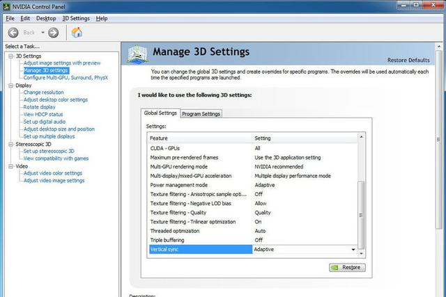 AdaptiveSync:这是Nvidia的一个改进,可以监视监视器的最大刷新率。如果游戏的FPS等于或高于刷新,则启用VSync。如果FPS低于此值,则禁用它,从而防止出现一些输入延迟问题。