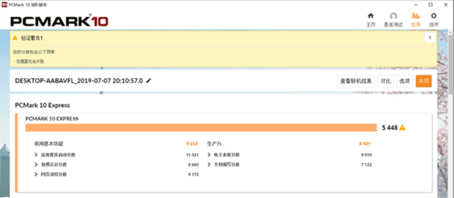 软件跑分介绍后提示了“验证警告”点进去后提示“CPU无法识别”