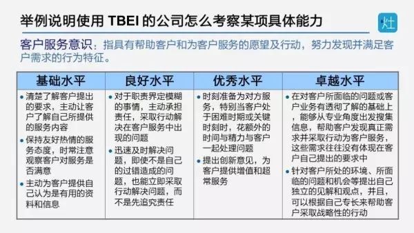 用 TBEI 来评测候选人的方法来源于对绩效优良员工所具备的、区别于绩效一般员工的能力 (competency) 的逆向工程。这句话有点拗口,但其实就是把绩效好的员工拎出来,研究他们和一般的员工相比有什么独特之处,结合公司的文化和未来几年发展方向,总结形成不多的几项能力点,形成能力模型。像宝洁这样的世界 500 强公司由于规模庞大员工遍布全球,都是靠这样的一套统一的能力模型来对全球员工进行选拔、发展和管理。