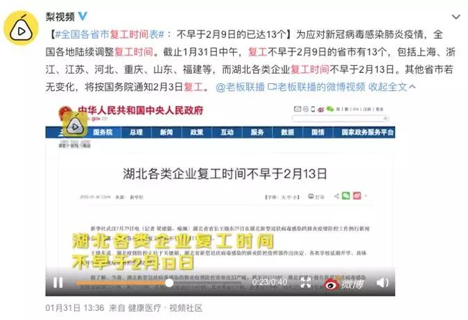截止1月31日,依官方报道,全国复工不早于2月9日的省市有13个,包括上海、浙江、江苏、河北、重庆、山东、福建等,而湖北各类企业复工时间不早于2月13日。