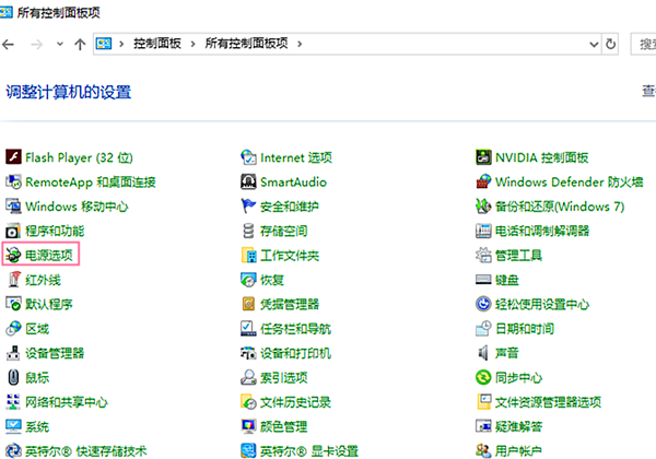 2、打开“控制面板-电源选项”。