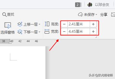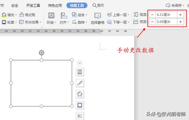 3.点击选中右边的长方形,此时会出现此长方形的长与宽的数值