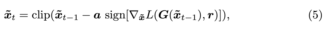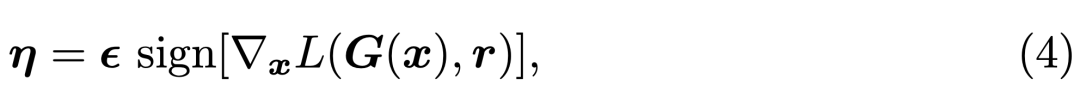 例如早年提出的 Fast Gradient Sign Method(FGSM),如果我们令 x 表示输入图像、G 为完成换脸的生成模型、L 为训练神经网络的损失函数,那么我们可以在当前权重值的邻域线性逼近损失函数,并获得令生成图像 G(x) 与原本换脸效果「r」差别最远的噪声η。