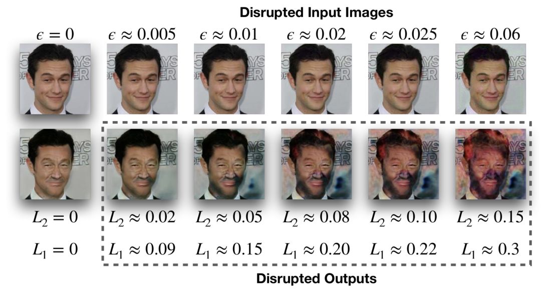 这一破坏的结果是:所生成的图像将被充分劣化,要么使得该图像无法使用,要么使得该图像的变化明显可见。换而言之,不可见的噪声,令 deepfake 生成明显是假的视频。
