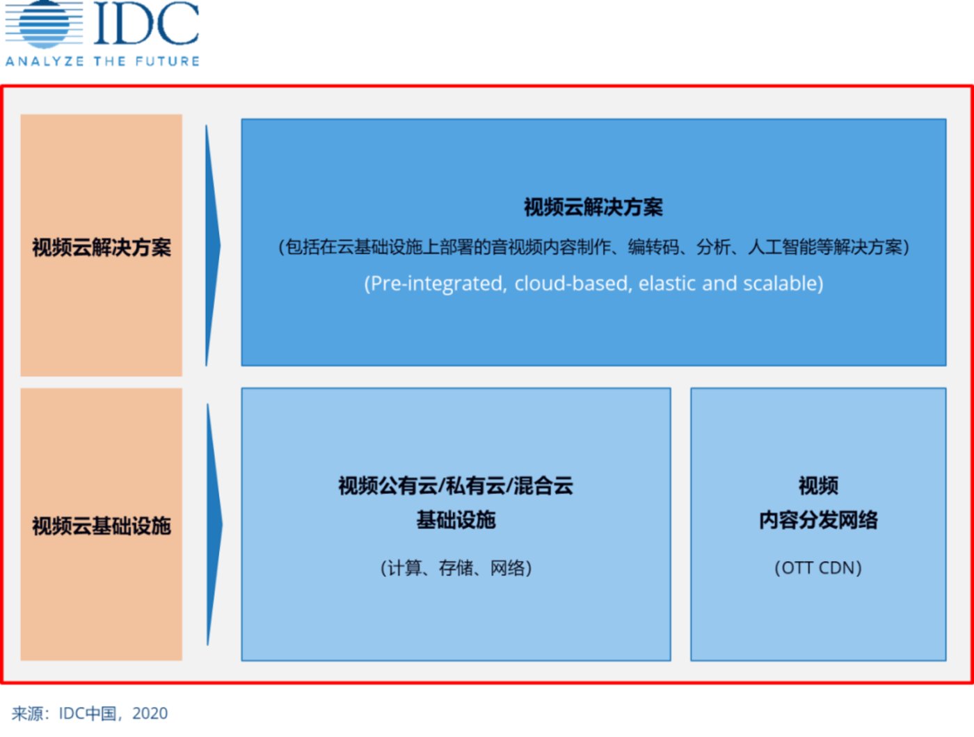 IDC中国发布的视频云解决方案框架图
