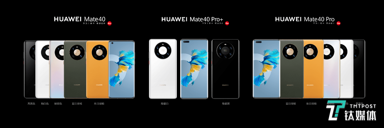 至于素皮版本,华为Mate40和华为Mate40 Pro还拥有秋日胡杨和夏日胡杨,一黄一青两种配色。同时,华为Mate40 Pro+还推出了陶瓷黑和陶瓷白两款高端造型,白色若凝脂,黑色如墨玉。