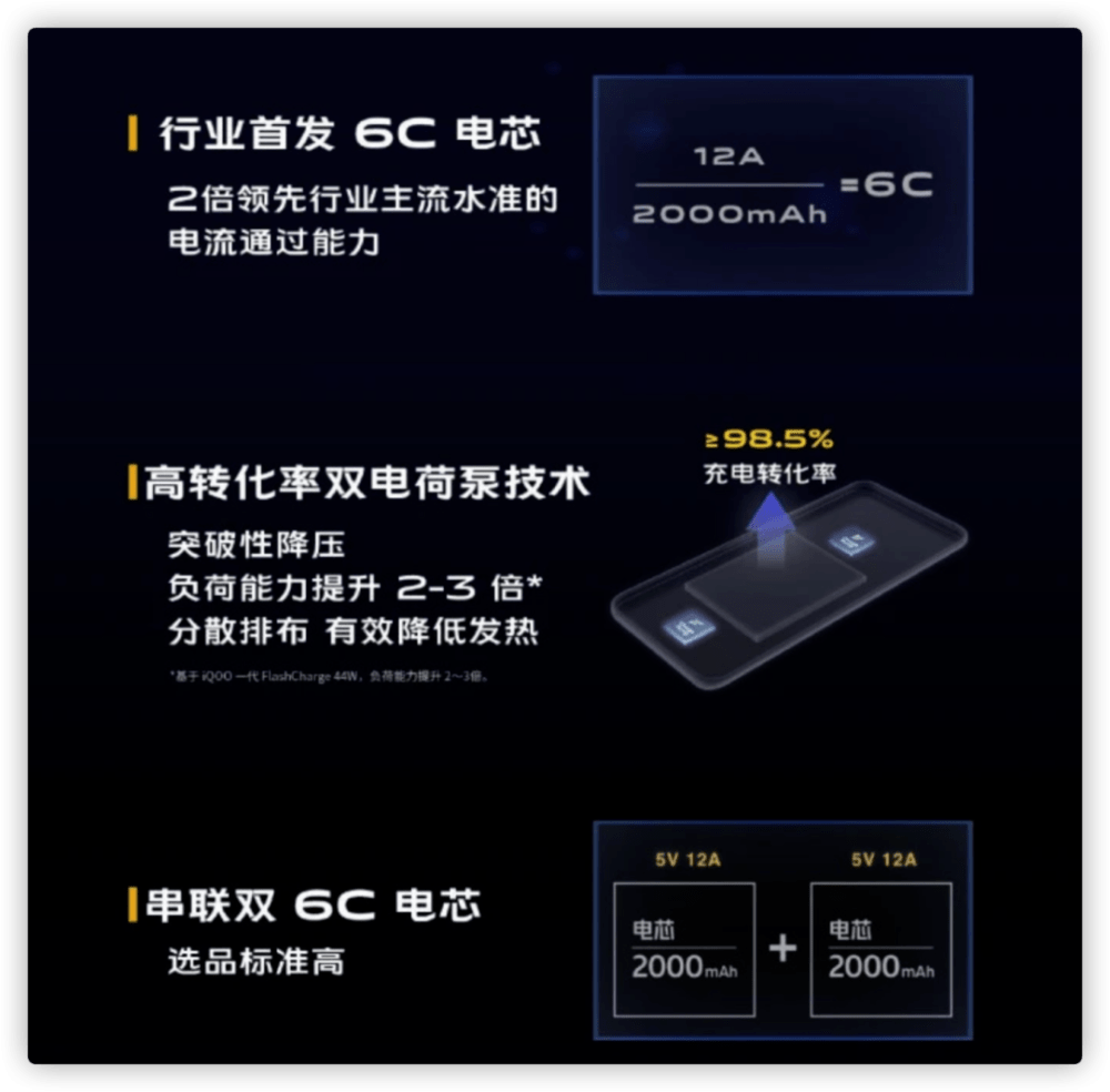 当然,在中端机型上,充电器倒可能因为成本原因被换成低配。但从目前百瓦快充的技术来看,他们都需要对手机电池进行大量改造(如三电荷泵、6C电芯等),中端机型在明年大概率不会普及百瓦快充,而是继续当下的60W快充配置。