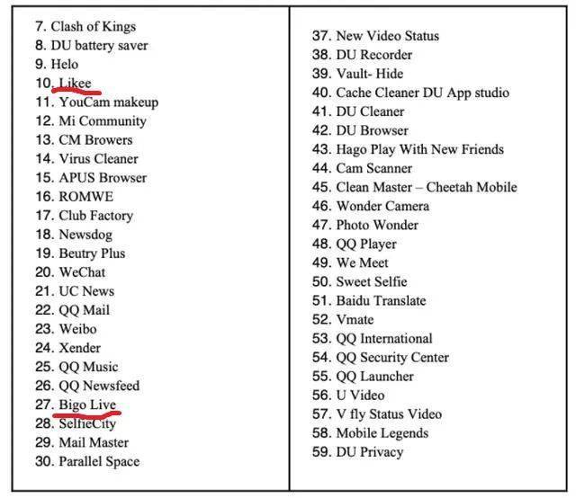除了众多对手的威胁之外,还需要面对政府的刁难。今年6-7月,印度政府以“出于国家安全”为由,发布了59款应用的封禁名单,其中不仅有TikTok,同时欢聚时代的BIGO LIVE、Likee等应用也包括在内。
