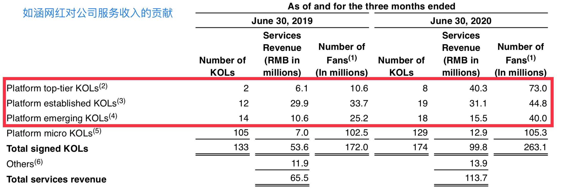 也就是说,公司用极少量的头部网红保持住以往的自营收入,得以将更多资源投入平台模式,产生翻倍的佣金与广告收入。