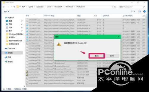 13、我们点击删除后,会弹出一个警告对话框:确实要删除选中的Cookie吗?,如果一定要删除,点击:是(Y);