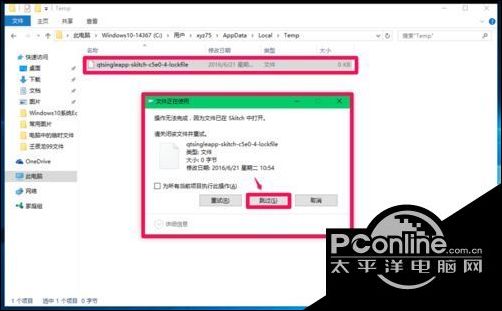 8、可能出现少数或个别临时文件正在使用中,无法删除的现象,跳过可以了(注销系统或电脑重启后可以删除);