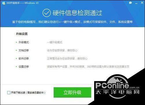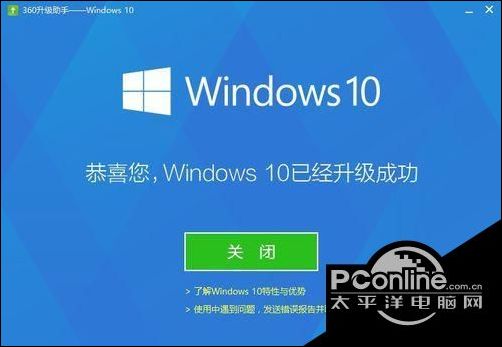 以上就是使用360升级win10系统的方法介绍了。这种方法操作起来非常简单,有需要的用户,不妨按照PConline小编的方法使用看看吧!
