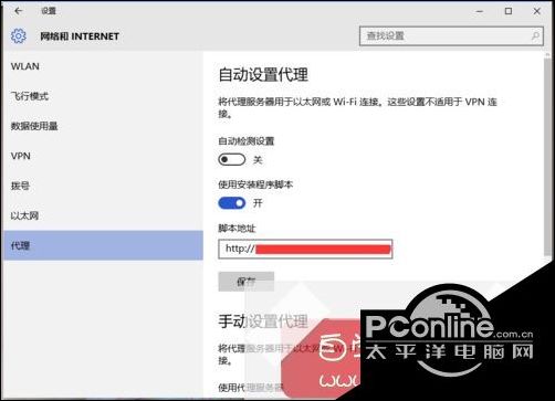 3、自动代理设置中的“使用安装程序脚本”是否打开且有“脚本地址”,如图所示(若无,则此方法不适用);
