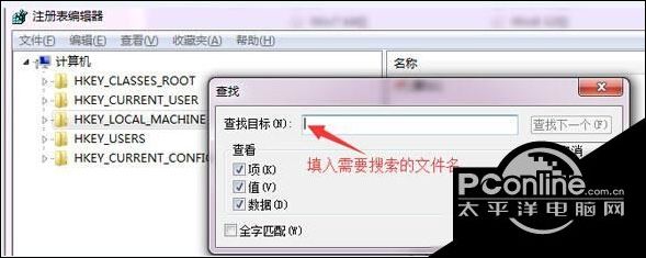 3、删除对应的文件后请搜索相应的文件注册表看是否存在相应的注册表,如果存在删除即可。具体查看方面见下图: