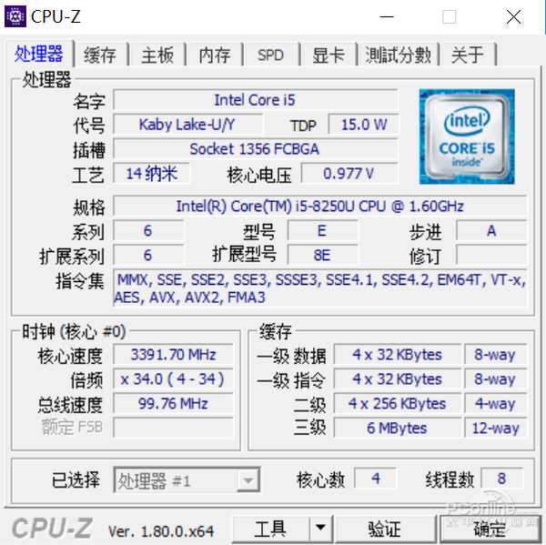 i5从之前的双核心四线程升级为四核八线程,基础频率下降但睿频变得更高了,在此基础上还能够保持依旧15W的TDP,这样的成绩相比于之前几代14nm工艺的CPU有着巨大的提升。
