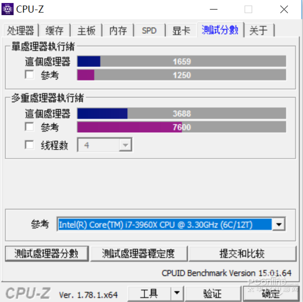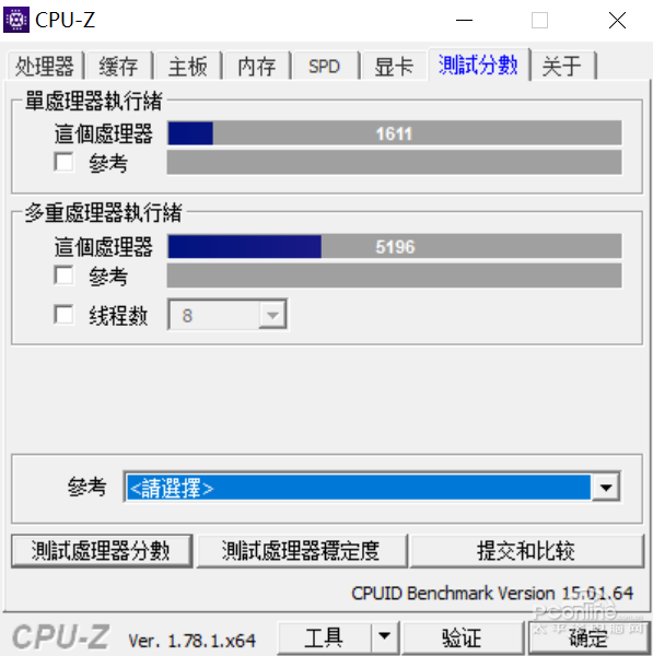 通过CPU-Z的跑分,单个处理器得分为1611,多处理器得分为5196。和下图的i7-7500U相比在单核得分上略低毕竟双核变4核,但多核得分则有着非常明显的提高。