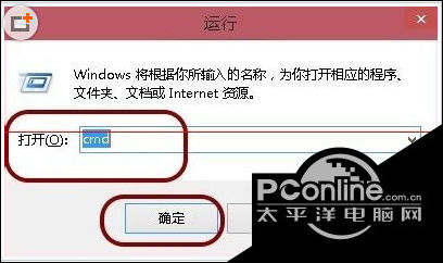 2、下面,我们使用命令行工具,来彻底关闭Windows的休眠功能,并且希望彻底删除这个体积超大的文件。首先,打开系统开始菜单中的运行(可以按下快捷键Windows+R),然后输入cmd,并按下回车键确定。