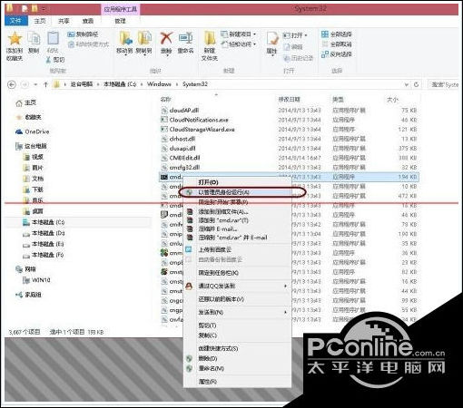 7、右击在弹出菜单中,点击“以管理员身份运行”。然后执行上述的命令行任务,即可成功删除Windows系统休眠文件hiberfil.sys