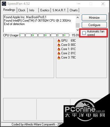 1、如果台式机电脑没有专业的温控或风扇控制软件,那我们就需要用到一款SpeedFan软件,下载地址: 点此前往 ,启动后它会在界面直接显示出电脑硬件的温度(主要是处理器、主板和显卡的温度),懒人可以勾选“Automatic fan speed”让它自动控制风扇。