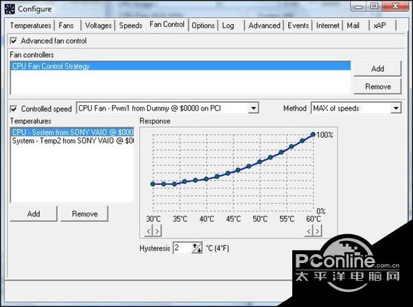 2、或者进入“Configure”内,微调风扇转数对应的内部温度,使电脑在温控和噪音之间,有个合适的平衡点。
