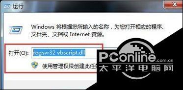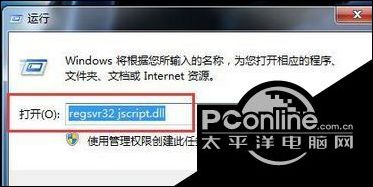 1、点击开始----运行,在运行中输入regsvr32 jscript.dll后点击确定;