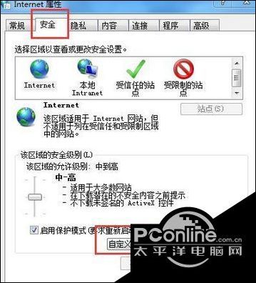 1、点击浏览器上的工具---Internet选项-----安全------自定义级别;