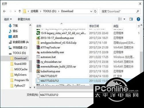 8、点开update bios from file右侧的小文件图标,会出现本地硬盘文件的选择界面,找到之前下载好的Bios文件,如下图如例,小编下载的是F12版本的Bios文件。